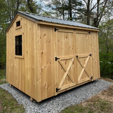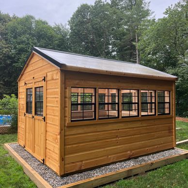 This gravel pad helps keep grass and weeds away from the shed, minimizing maintenance and reducing the risk of moisture damage to the shed's foundation.