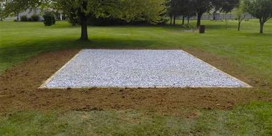 Example: 10' x 10' shed → 12' x 12' gravel pad